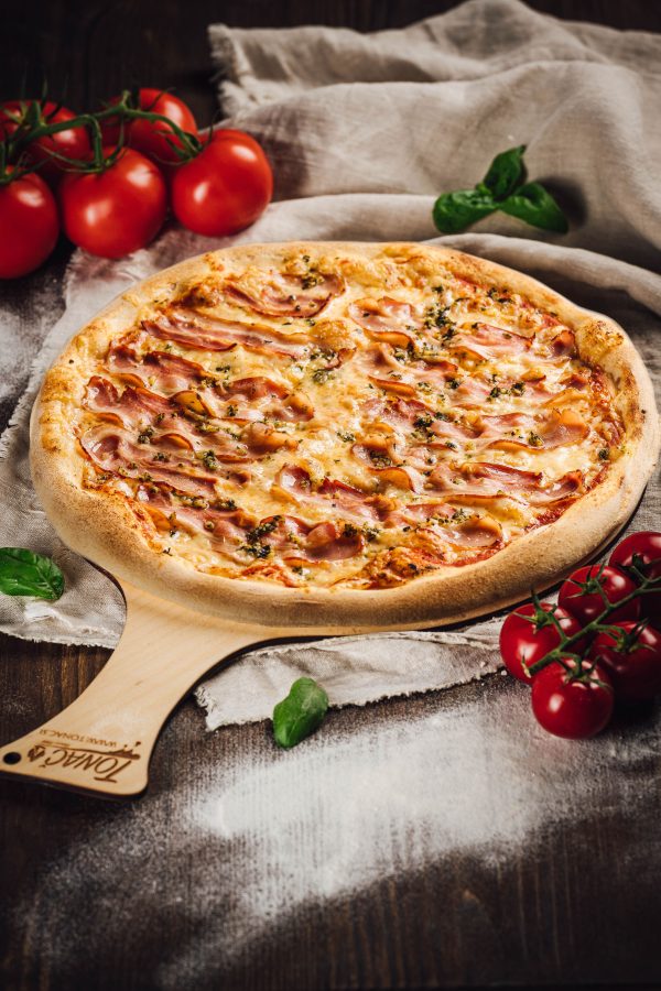 - pizza s slanino (pelati, sir, tržaška omaka, slanina, origano)