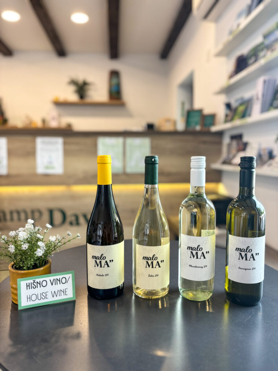 Ob številnih drugih dobrotah boste na recepciji našli tudi naše hišno vino in domači med – dve posebnosti, na kateri smo še posebej ponosni. Skupaj tvorita popolno kombinacijo: sladek začetek jutra z žličko medu ali sproščen zaključek večera s kozarcem vina. Odkrijte del naše zgodbe. 💛